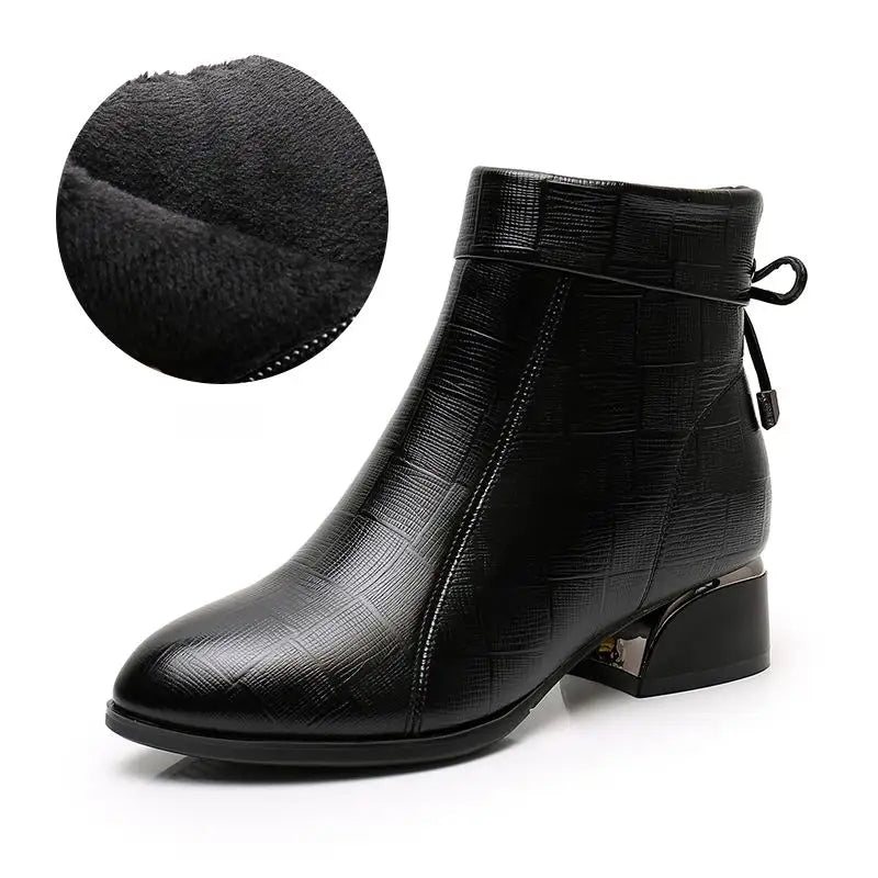 Step into sophistication and warmth with the Bunion-Friendly Ankle Boots with Thick Heels for Stylish Support, designed to provide all-day comfort, superior warmth, and timeless elegance. Crafted from premium leather, these boots offer exceptional durability while enhancing your winter wardrobe with a refined and modern look.