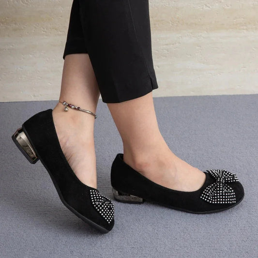 Rhinestone Bow Loafers with Soft Padding & Low Heel