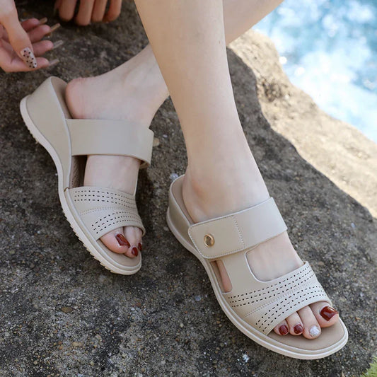 Women’s Medium Heel Wedge Sandals with Orthotic Sole