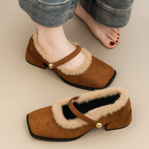 Furry Mary Jane Suede Shoes – Cozy Elegance for Every Day