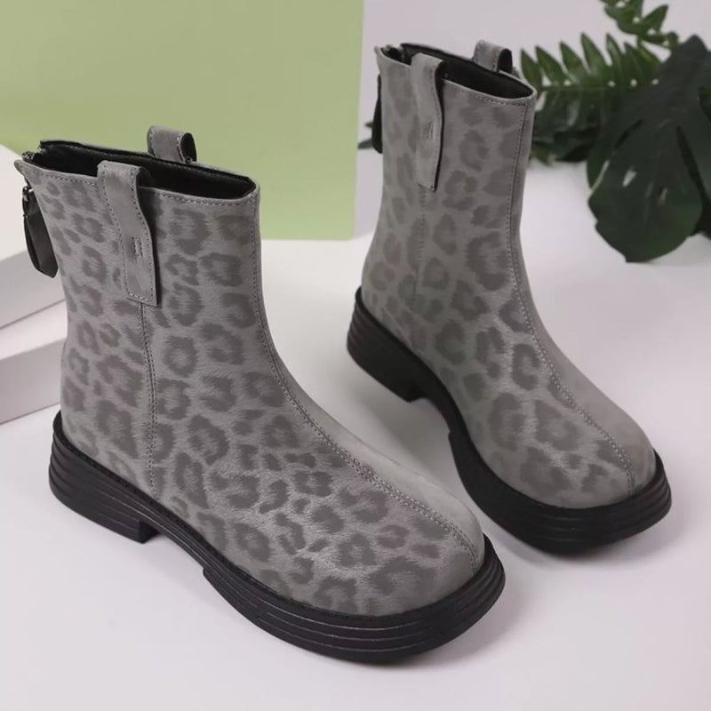 Crafted with a soft leopard-pattern upper, these boots deliver standout style while offering flexibility and all-day wear. The cushioned sole reduces impact with each step, while the secure back zipper ensures quick on/off convenience without compromising fit.