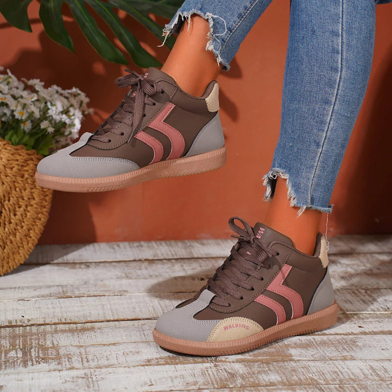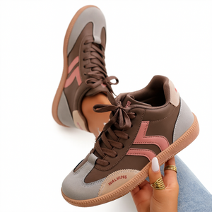 Step out in confidence with our Round Toe Lace-Up Sneakers, designed to combine fashionable color blocking with ultimate comfort. These sneakers feature a contemporary silhouette and versatile tones of black and brown, making them the perfect match for jeans, leggings, or casual dresses. Whether you're commuting, shopping, or traveling, these sneakers ensure you stay on trend without sacrificing comfort.