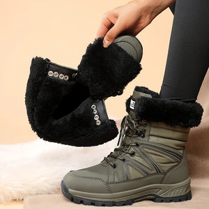 Made from premium waterproof materials and finished with reinforced stitching, these boots are engineered for durability. The anti-slip rubber outsole ensures stability on icy or uneven ground, while the lace-up closure allows for an adjustable, secure fit. Choose from Beige, Black, or Green for a chic, versatile look that matches any winter outfit — from cozy leggings to puffer coats.