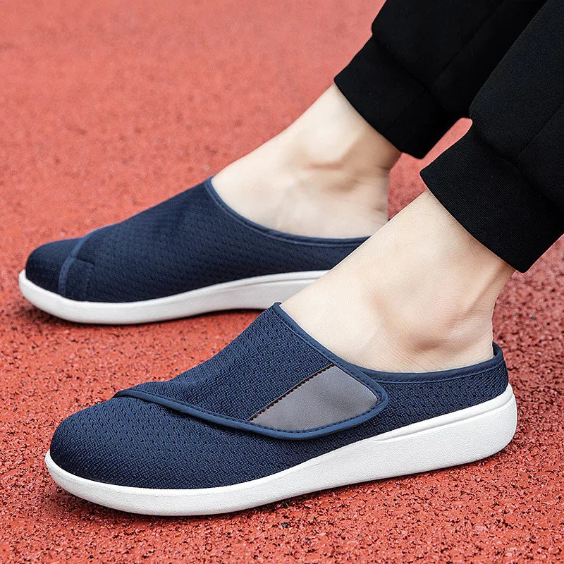 Experience therapeutic comfort with our Breathable Wide-Fit Orthopedic Shoes for Men & Women, specially crafted for those suffering from swollen feet, bunions, hallux valgus, diabetic foot pain, or edema. These unisex half slippers combine a backless slip-on design with adjustable hook-and-loop closure, making them the perfect choice for individuals who need easy wear and customized support without sacrificing breathability.