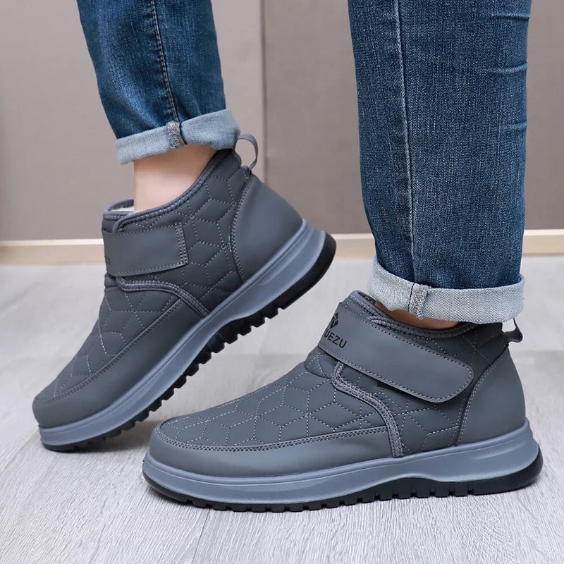Stay warm, supported, and protected in winter conditions with these waterproof men’s sneakers. Designed with a soft plush lining, a rounded toe for natural foot positioning, and an ankle-high structure for stability, they are ideal for sensitive feet and bunion comfort. The lightweight shock-absorbing sole ensures ease of movement during daily wear.