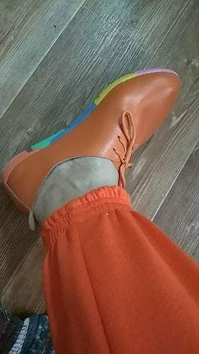 Took a while for them to arrive, but they were coming from China, so I didn't expect a quick delivery. On the plus side, the shoes look just like they did in the picture. They are super cute! The color is beautiful with matching shoelaces (I bought the blue), and the multicolored sole is adorable. They are very nice for the price. They seem to be well made. The leather is soft and pliable.